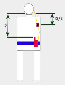 You can use our Noble 1 RF reduction device when you have a wired earpiece/microphone connected to your Cell Phone. One approach to using our device will be to put your Cell Phone on your belt and have the wire for the earpiece/microphone coming up to your ear. In the figures below we show our model wearing the Noble1, as well as a diagram showing the placement of the Noble1 half-way between the chin and the waist.